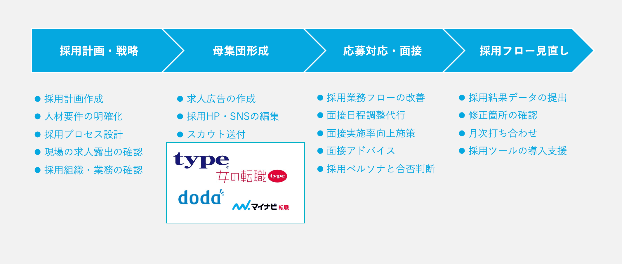 ノウハウや採用管理の仕組みを採用現場に実現し、会社の資産になる採用成長を実現します。